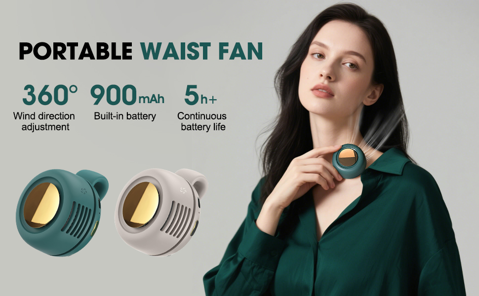 This ultra-quiet bladeless mini fan features 5 rotating air outlets and 60 high-speed blades for powerful, low-noise cooling (under 30dB). With a 360° adjustable clip-on design, it can be worn at the waist or neck for direct airflow under clothing. Safe for kids and the elderly, the bladeless design offers gentle yet effective cooling. Powered by a built-in 900mAh rechargeable battery and USB-compatible, it’s perfect for travel, outdoor activities, or daily use. Ideal for hot weather, whether at the beach, camping, working, or commuting.