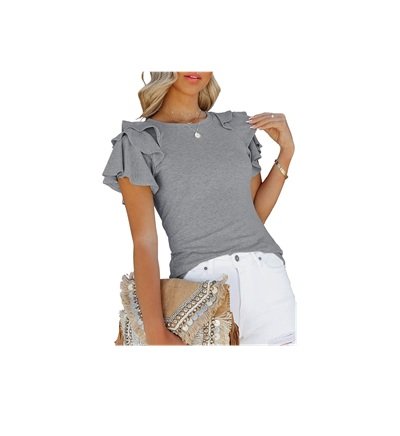 Womens Ruffle Short Sleeve Top – Summer Casual Slim Fit T-Shirt