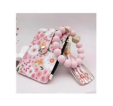 Read MoreBoho keychain wallet with a floral pattern, beads, and tassel. Combines style and function, holding keys, cards, and coins. Made…