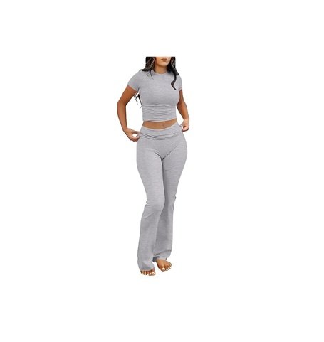 This is a slim-fit women’s lounge set made of a soft, stretchy rayon/elastane blend. It features a short-sleeved cropped top…