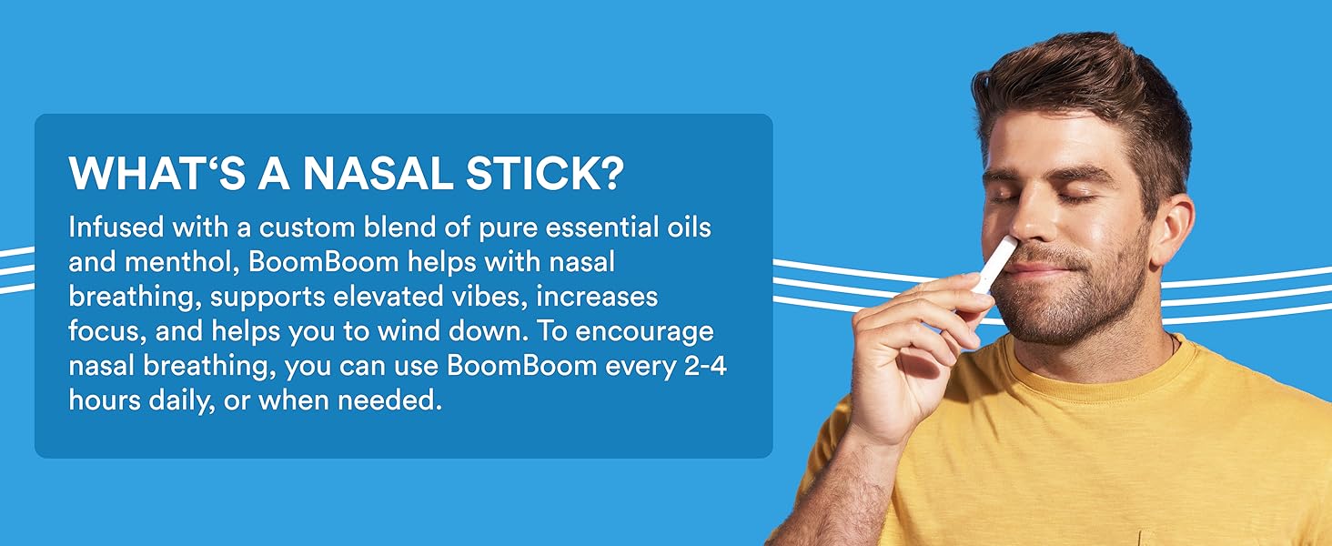BoomBoom’s Breakthrough Vapor Flow Technology (VFT) features a specially designed wick that ensures powerful, long-lasting vapors, keeping the product fresh for up to 30 days. The fast-acting vapors provide a cooling sensation that alleviates congestion and enhances focus, making it ideal for daily use. Made in California with a 100% natural blend of menthol and essential oils, the product offers four invigorating scents: Mint, Wintermint, Tropical, and Lavender. Compact enough to fit in your pocket, these nasal sticks are perfect for improving breathing anytime, whether during workouts or daily activities. Experience the freedom to breathe easily and embrace life fully.