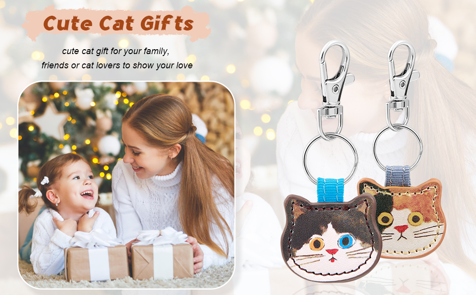 This Calico Cat Genuine Leather Keychain measures 3.46 inches in length with a 1.57-inch cat charm. Made from 100% genuine leather, it offers durability and style. Featuring four cute cartoon cat designs (black, ginger, cow, and calico), it’s a charming accessory for cat lovers. The versatile lock buckle makes it easy to attach to handbags, purses, wallets, or keys, adding a stylish and eye-catching touch to your everyday look. Perfect as a thoughtful gift for cat lovers, family, or friends on any occasion—Christmas, birthdays, Valentine’s Day, Mother’s Day, weddings, and more.