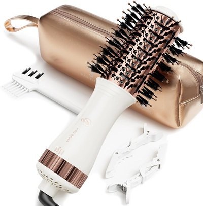 The HAIR TRENDS 2-inch oval brush blow dryer is a compact, dual-voltage device designed for global use, weighing only 0.88…