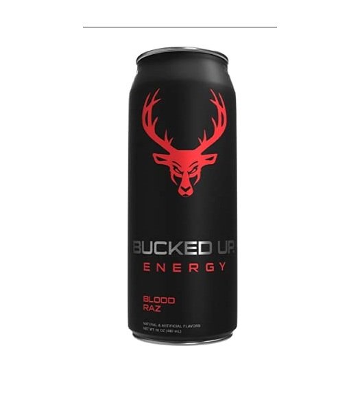 Read MoreBucked Up Blood Raz energy drink, 12 pieces in 16oz cans. Contains 300mg caffeine, sugar-free, zero calories and does not…