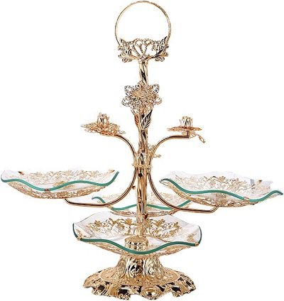About this item Elegant Design: A stylish 4-tier design with clear glass trays and gold columns. Decorated with metal ivy…
