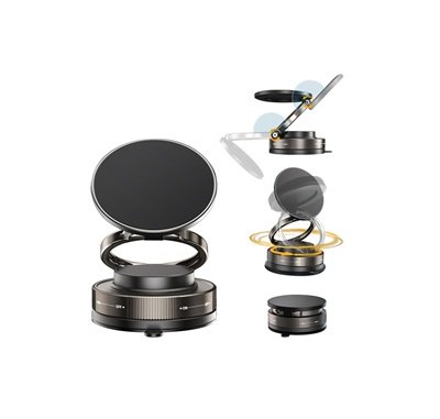This foldable magnetic car mount uses a reinforced vacuum suction cup with a twist-lock mechanism for strong, residue-free attachment. It…