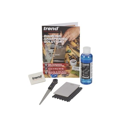 This sharpening kit includes a double-sided diamond stone (600/300 grit), a 3″ mini tapered file (600 grit), Trend lapping fluid,…