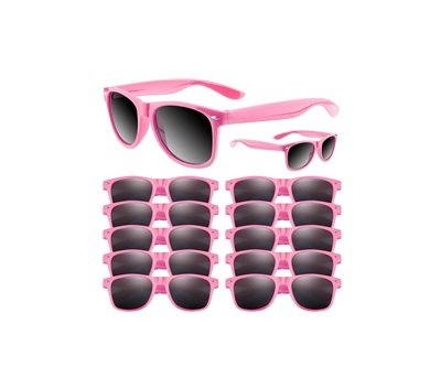 This package contains 12 pairs of pink party sunglasses. They’re made of polypropylene, making them comfortable and durable. The frame…