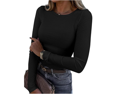 This long sleeve top is made from high-quality, soft rayon spandex, offering a stretchy and breathable ribbed fabric for comfort.…