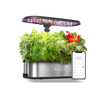 Patented LetPot smart hydroponic system with app control for lighting schedules and watering reminders. Features a 24-watt full spectrum LED…