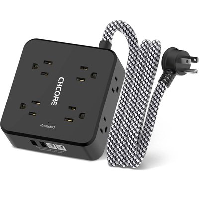 This 12-in-1 surge protector power strip features a space-saving 3-side design with 8 AC outlets and 4 USB ports (including 2 USB-C), allowing up to 12 devices to charge at once. The 5-ft braided extension cord with a flat, right-angle plug offers flexible placement and easy wall mounting, making it ideal for home, office, and dorm rooms.