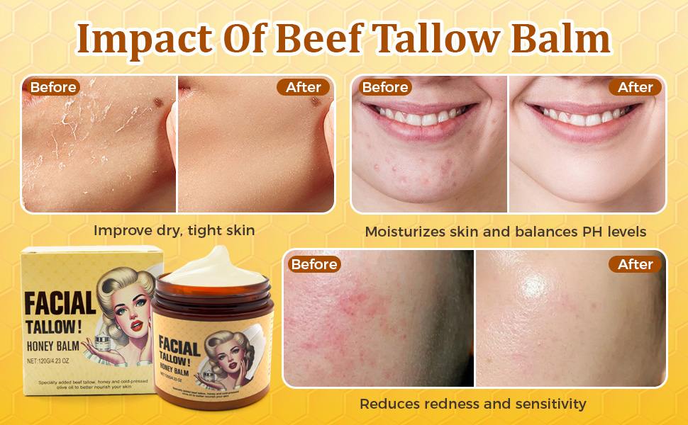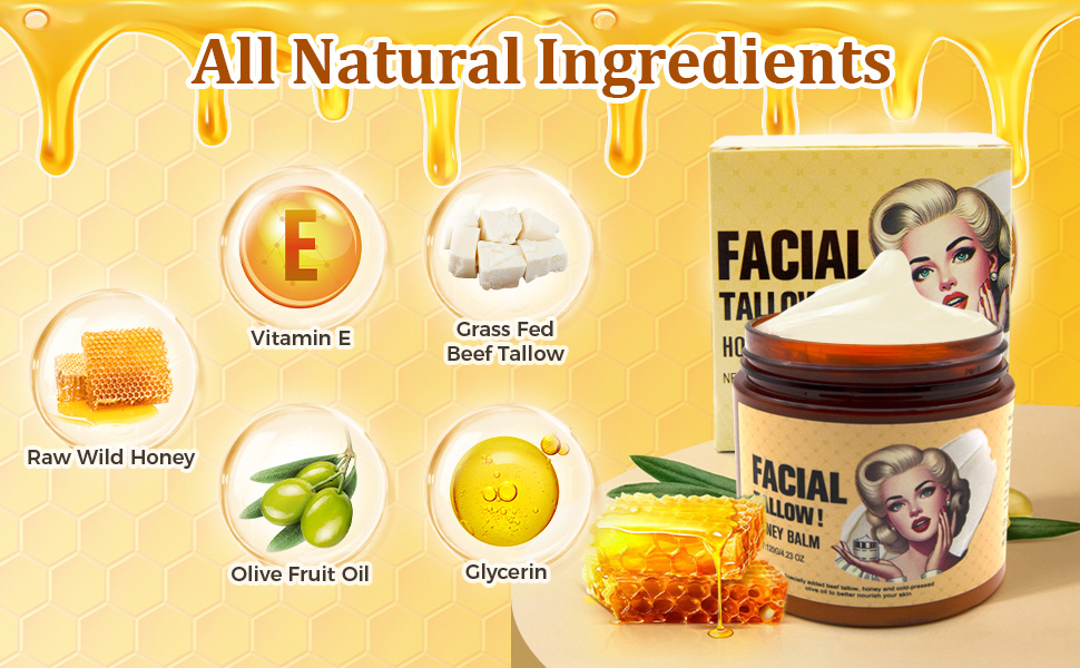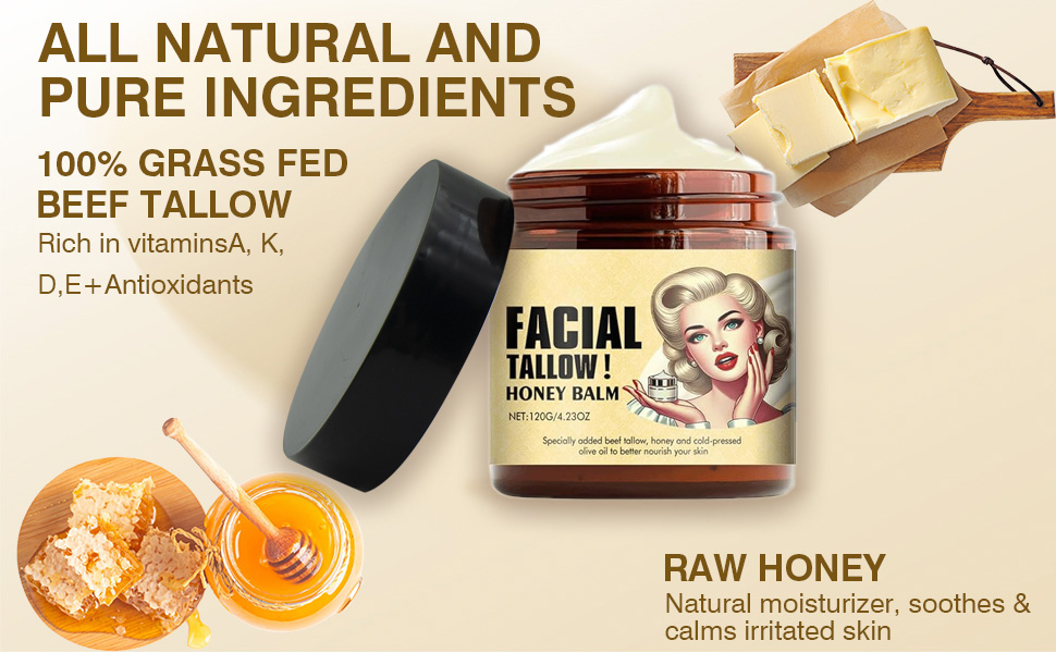 Beef Tallow and Honey Balm is a skincare product enriched with grass-fed butter and honey, designed to nourish and improve dry, rough skin without causing any burden. It is suitable for sensitive skin and contains natural ingredients rich in vitamins for better skin nourishment. The tallow face moisturizer provides deep hydration and soothing relief, incorporating essential oils and raw honey for added luxury.