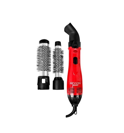 This hot air styling kit uses ionic technology for less frizz and ceramic coating for even heat distribution and reduced damage. It comes with 1″ and 1.5″ attachments for curls and blowouts, plus a smoothing concentrator. It’s 1200 watts and works best on towel-dried hair, not fully wet hair.