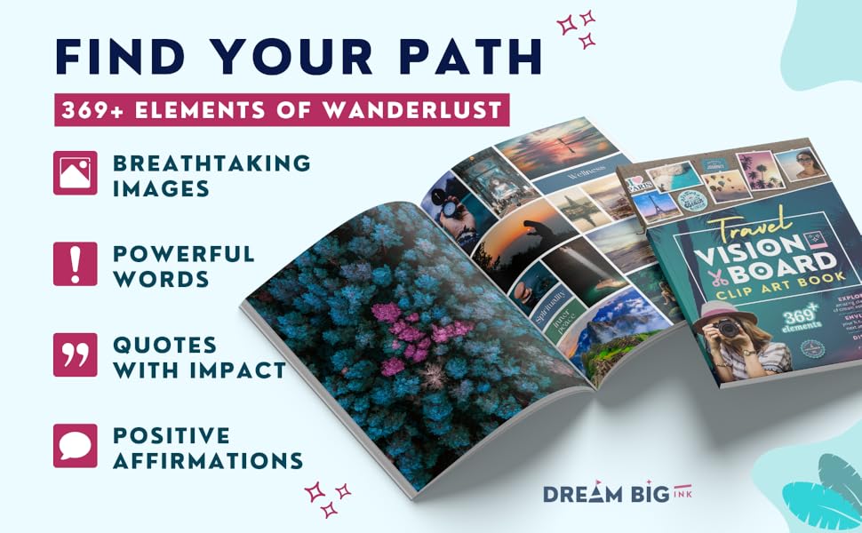This beautifully curated book helps you visualize and manifest your travel aspirations through inspiring images, powerful quotes, and positive affirmations. Perfect for creating personalized vision boards that ignite your wanderlust!