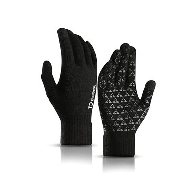 The gloves feature high sensitivity touchscreen capabilities, allowing users to operate smartphones and tablets easily. They have a triangle silicone anti-slip design on the palm for a firm grip, making them ideal for driving or holding devices. The inner lining is soft and warm without being bulky, providing comfort and enabling quick typing. The gloves have an elastic cuff that keeps out snow and wind while ensuring a snug fit. They come in two sizes, making them a suitable unisex gift for family and friends.